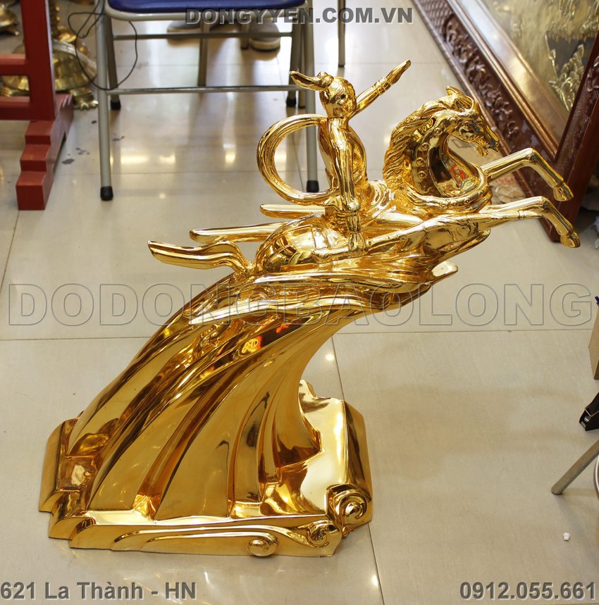 tượng thánh gióng cao 65cm bằng đồng mạ vàng 24K